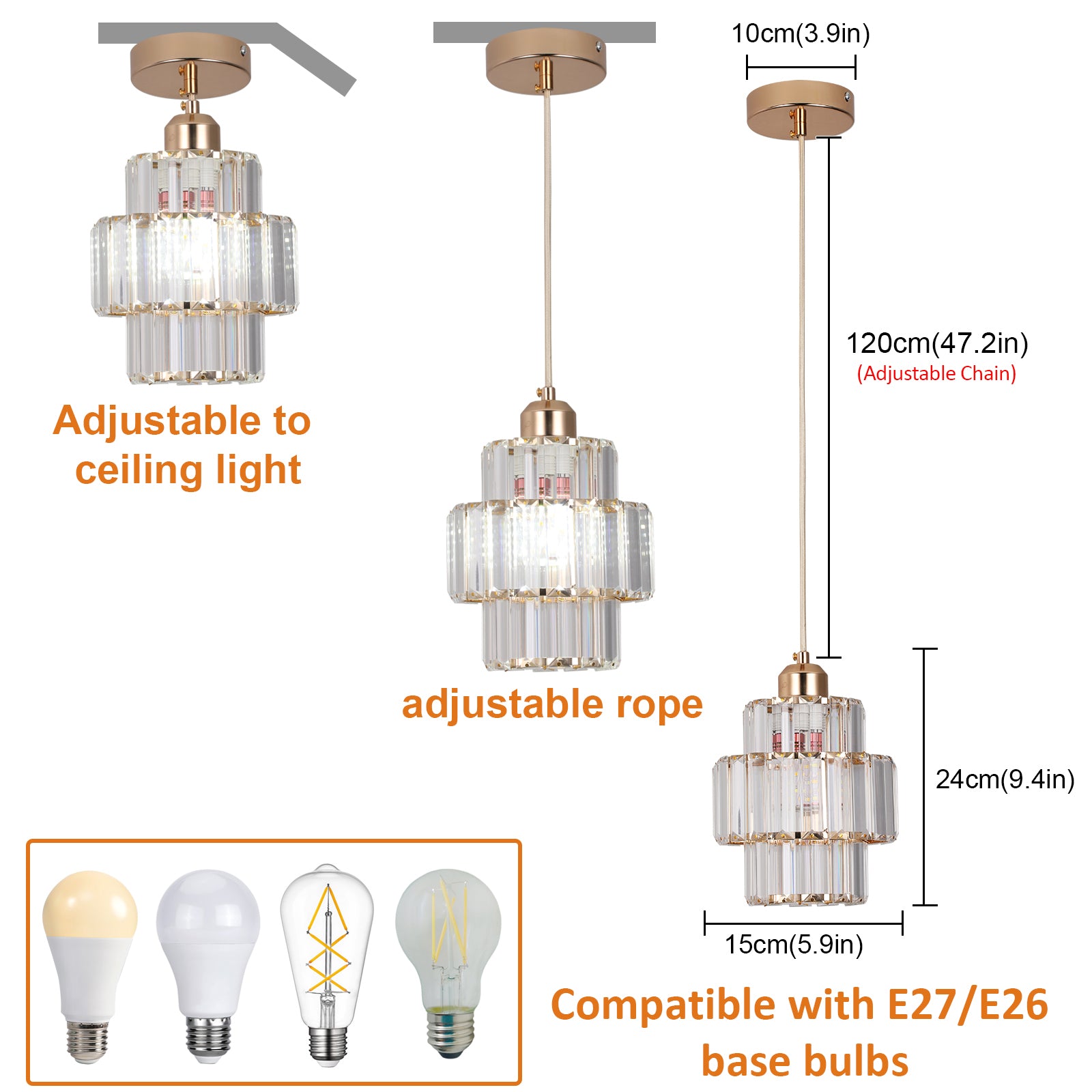 Add a touch of luxury to your space with this stunning crystal pendant light. Featuring a sleek gold iron frame with high-quality crystal accents, this fixture creates a warm and sophisticated ambiance.